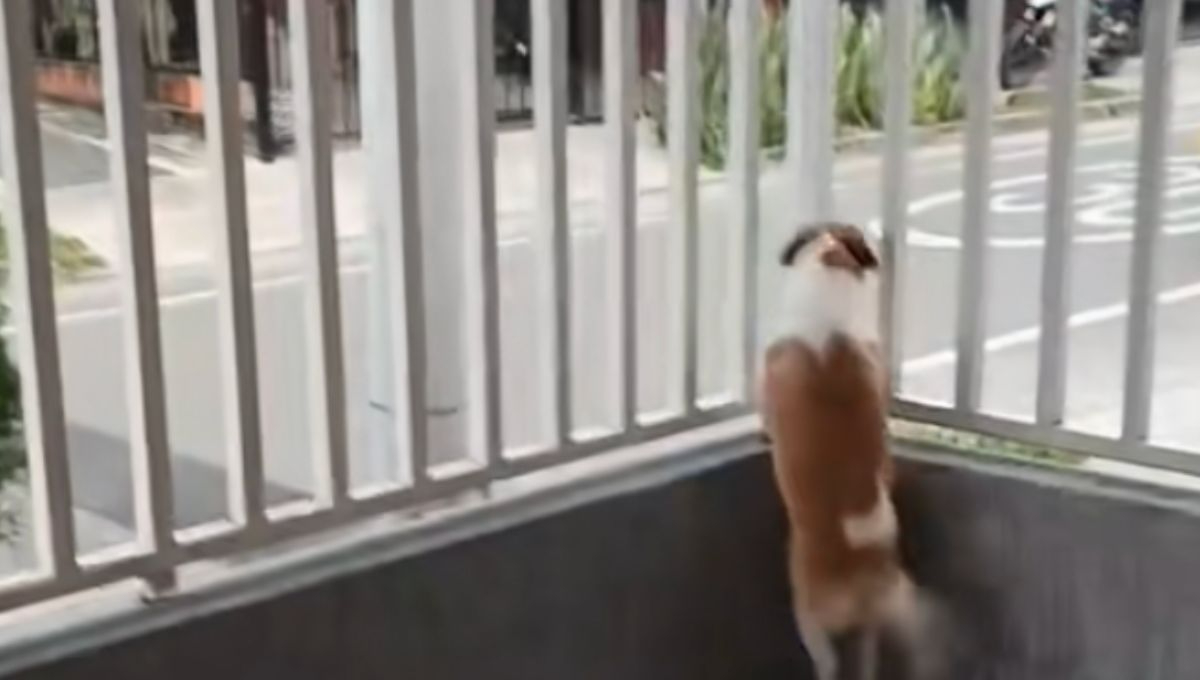En las imágenes, se muestra como está la perrita parada en dos patas, mientras está apoyada de la reja de su casa, pero cuando se percata que ya viene la persona que vende cocos, comienza a mover su colita, mostrando gran emoción, pues podrá disfrutar de un rico coco.