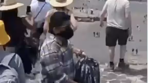 Las imágenes continúan cuando quien filma el video comienza a descender de la pirámide y apenas baja 11 escalones de los 48 que tiene la escalinata, es el momento cuando se escuchan dos disparos y todos los turistas comienzan a bajar despavoridos.