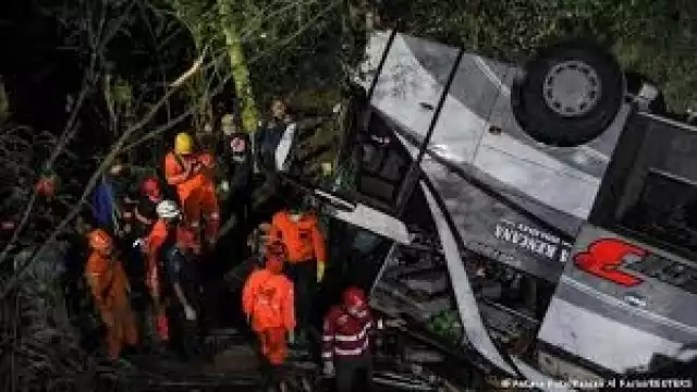 Al menos 27 personas, entre ellas varios estudiantes de secundaria, murieron en el accidente de un autobús que transportaba a peregrinos en la isla indonesia de Java, anunciaron este jueves las autoridades de la región de Bandung, Indonesia.