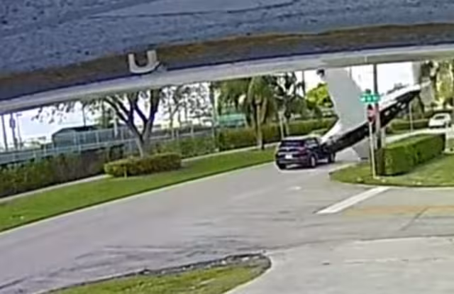 El trágico accidente que registrado por una cámara de seguridad de las casas cercanas al lugar. Los dos tripulantes de la avioneta murieron al instante, mientras que el adulto y el niño que viajaba en el vehículo quedaron gravemente heridos, según el reporte del Departamento de Bomberos de Pembroke Pines.