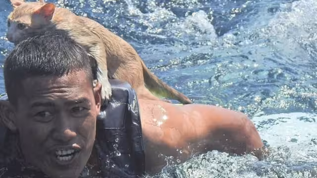 El marinero Thatsaphon, de 23 años, de la Unidad de Operación 491 del Comando de Defensa Costera y Área de la Mariana Real de Tailandia, se vistió de héroe al rescatar a los gatitos, el barco se hundía rápidamente, por lo que no dudó en ponerse el chaleco salvavidas para ir en busca de los animales.