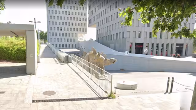 La mañana de este martes la policía catalana encontró a un hombre, de aproximadamente 40 años de edad, al quedar atrapado dentro de una estatua de un dinosaurio en Santa Coloma de Gramanet, una localidad aledaña a Barcelona.