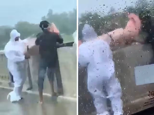 Captan a dos hombres lanzando un cuerpo a un río de la India: VIDEO