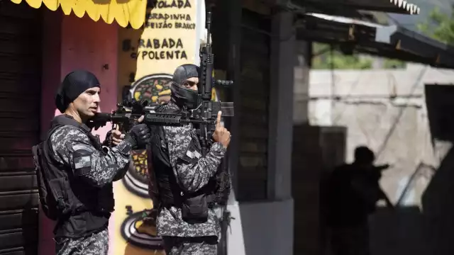 Los sospechosos intentaron escapar por los tejados cuando la policía ingresó al barrio en vehículos blindados y helicópteros sobrevolaron la zona, las balas disparadas durante el tiroteo alcanzaron un vagón de tren ligero e hirieron a dos pasajeros, dijeron autoridades brasileñas.