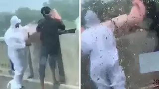 Captan a dos hombres lanzando un cuerpo a un río de la India: VIDEO