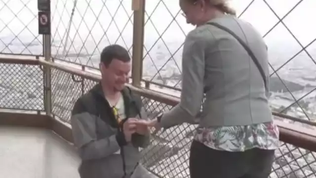 Con una vista panorámica de París como telón de fondo, Eric Gopel, se arrodilló y colocó un anillo en el dedo de su novia, Katja Panke. Ella aceptó su propuesta. “Estoy feliz”, dijo entre lágrimas de alegría.
