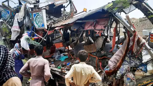 El accidente ocurrió a primera hora de la mañana de este lunes en la autopista Indus cerca de la localidad de Dera Ghazi Khan cuando un autobús de pasajeros chocó con un camión, dijo el portavoz de policía de la zona, Mubashir Malik.