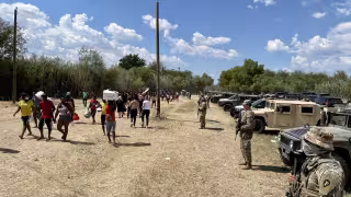 Texas frena paso de migrantes con barrera de vehículos