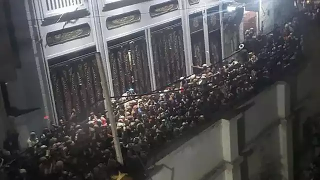 Un video emitido por la televisión hutí Al Masirah mostraba una multitud de personas, apretadas unas con otras, con la gente tratando de trepar por encima del resto para salir de la aglomeración.