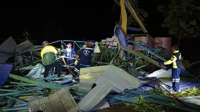 Los fuertes vientos arrancaron la cubierta y provocaron la caída de la estructura de metal atrapando a las personas que se encontraban allí, según las fotos divulgadas en Facebook por el Departamento regional para la Prevención de Desastres.