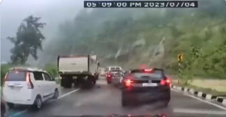 Lo dramático del suceso fue que quedó captado en vídeo por una cámara de un automóvil que venías detrás del vehículo. Las lluvias habrían provocado el reblandecimiento de la tierra que provocó que la roca se desprendiera.