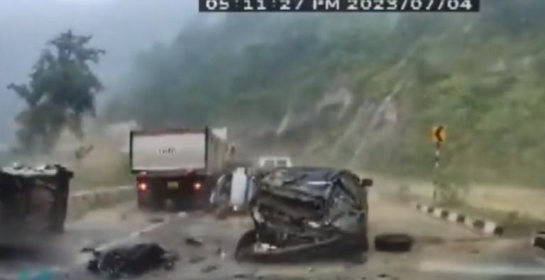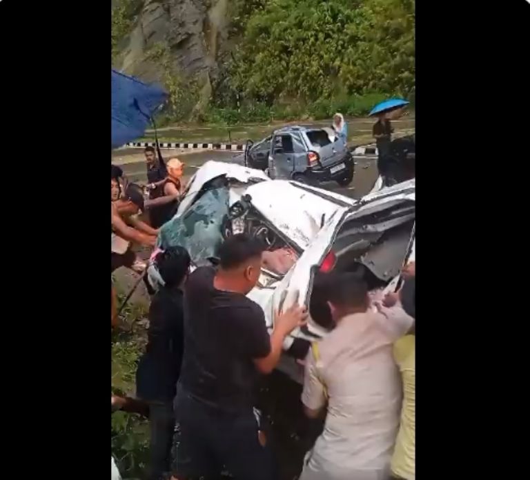 Al menos dos personas sin vida y otras tres lesionadas fue el saldo de un trágico accidente en donde unauto quedó aplastado al caerle una enorme roca en plena carretera en Nagaland, en India.