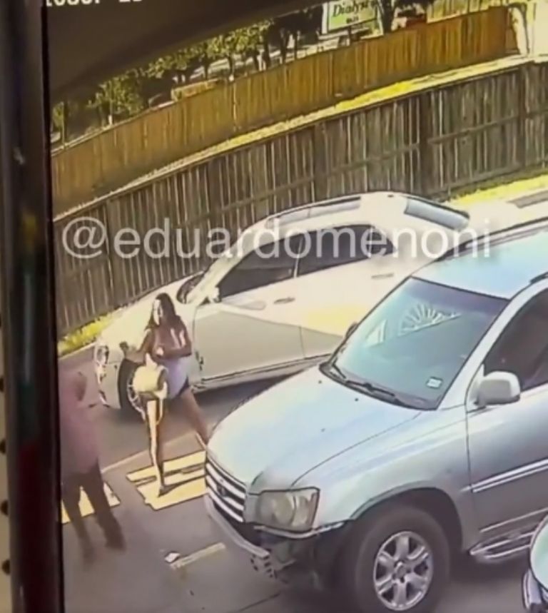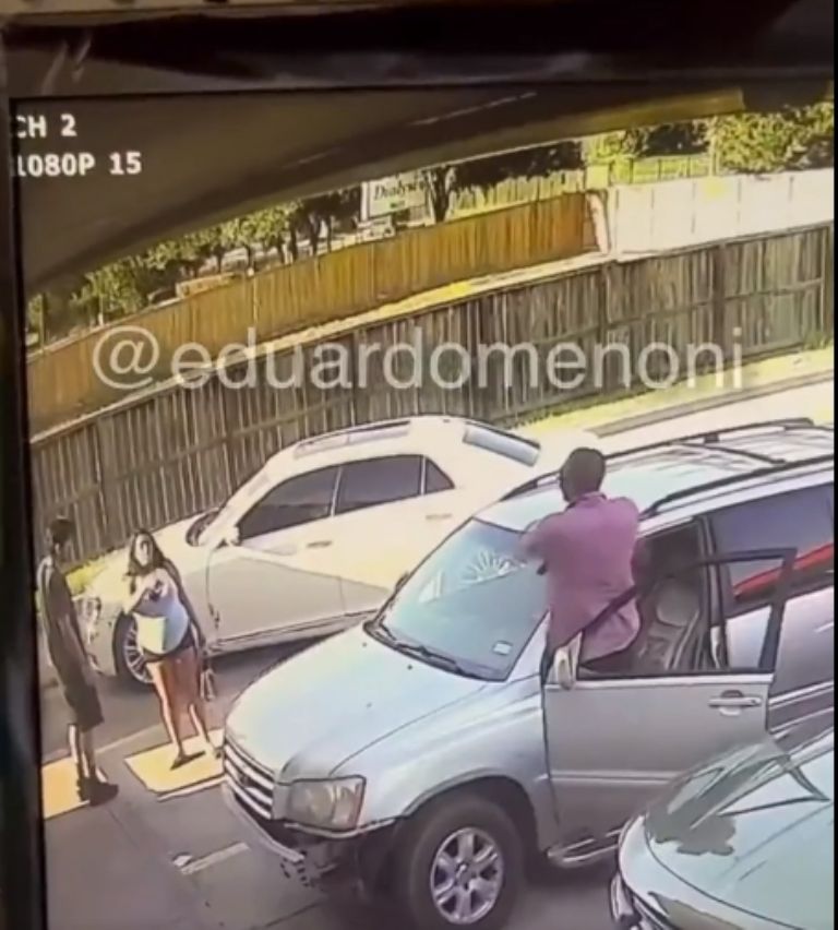No se sabe a bien cuál fue el motivo de los hechos, pero en la grabación se puede ver a un hombre que desde su automóvil amenaza a la mujer que se encuentra con varios meses de gestación al lado de otro hombre, cuando el atacante se acerca a ellos.