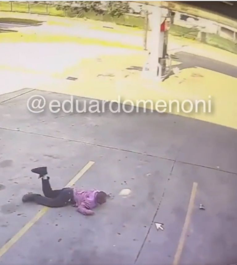 Con la cacha de la pistola golpea al acompañante de la mujer, pero no se espera que la embarazada sacara una pistola y accionara el arma, y aunque intentó huir, para su sorpresa, el hombre al que agredió también tenía una pistola y entre los dos le dispararon hasta dejarlo inmóvil en el suelo.