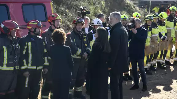 Durante su visita, los monarcas platicaron con los cuerpos de emergencia y rescate. / Foto: AFP