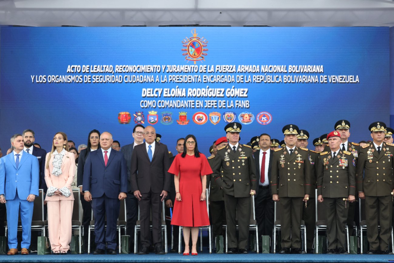 Militares y policías de Venezuela juran lealtad a presidenta Delcy Rodríguez