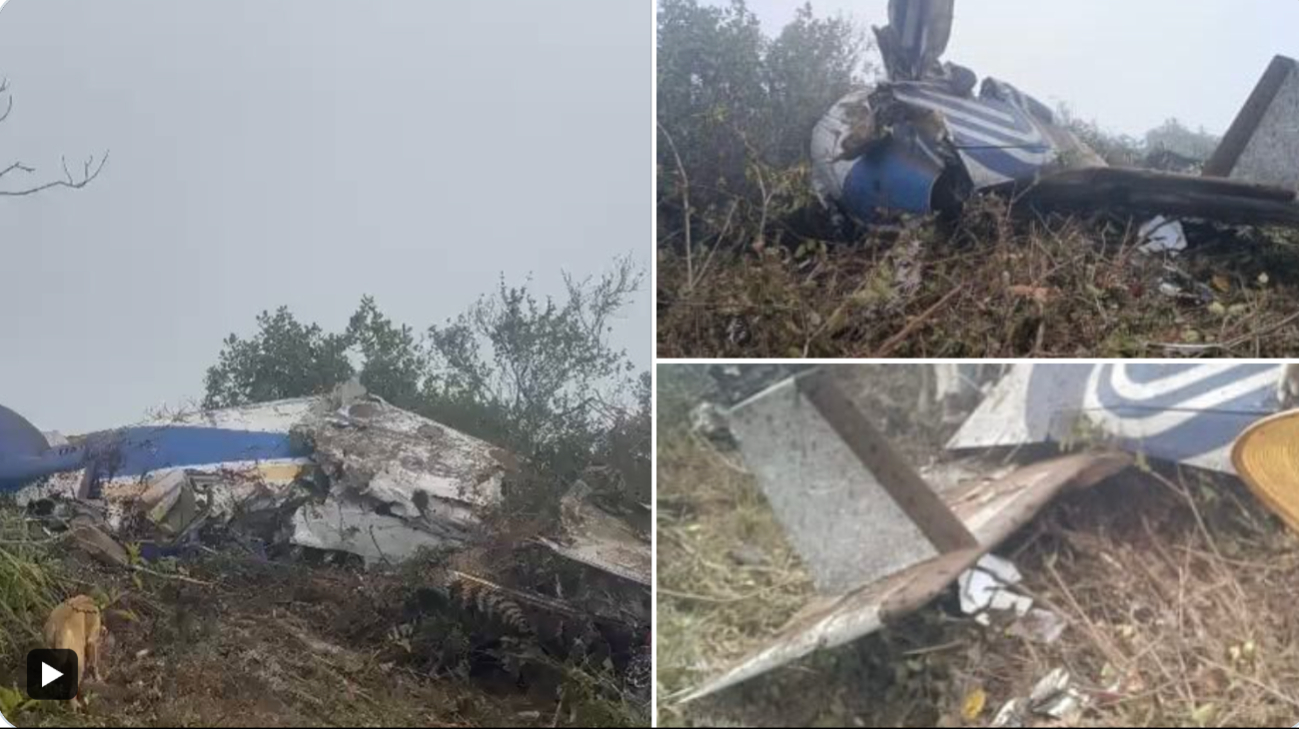 Imágenes compartidas en redes sociales muestran restos de fuselaje envueltos por arbustos.