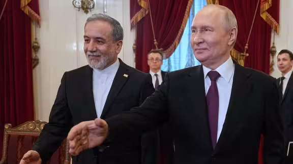 El presidente ruso Vladimir Putin con el ministro iraní de relaciones exteriores Abbas Araghchi en San Petersburgo / AP