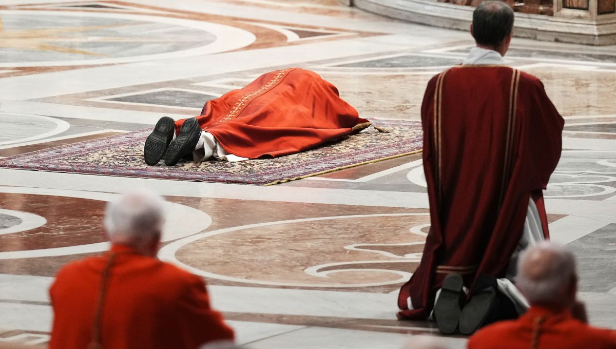 Vestido con paramentos rojos, que representan el martirio, León XIV se tendió completamente frente al Altar de la Confesión en la basílica de San Pedro, retomando una tradición que había sido limitada en años recientes debido a las condiciones de salud de su predecesor.