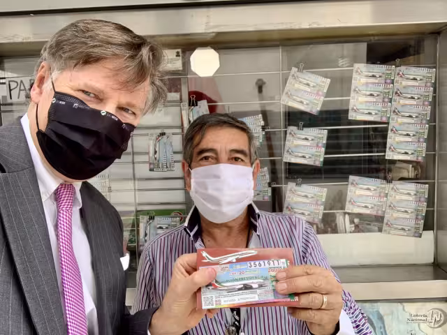 Christopher Landau acudió a comprar su billete de lotería para el gran sorteo especial del 15 de septiembre que entregará 100 premios de 20 millones de pesos cada uno.