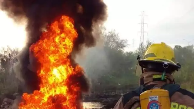 Luego de solicitar el apoyo de los servicio de emergencia, elementos del Heroico Cuerpo de Bomberos acudieron hasta este punto para controlar el incendio en el ducto Pemex; también arribó personal de Protección Civil Municipal y Protección Civil de Nuevo León.