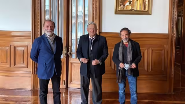 AMLO desayuna con Damián Alcázar y Epigmenio Ibarra en Palacio Nacional