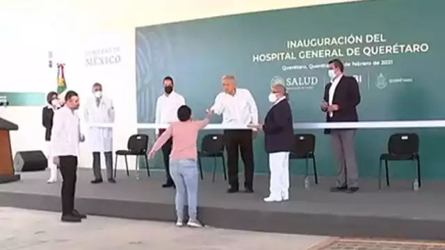 Dos mujeres lograron burlar el cerco de seguridad y acercarse al presidente de México, Andrés Manuel López Obrador durante el evento realizado por la inauguración del Hospital General de Querétaro.