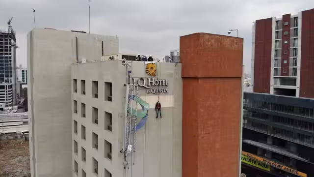 En Monterrey, Nuevo León un trabajador queda colgando a lo alto de un hotel. Fue rescatado al estar a punto de caer de la parte alta del inmueble mientras realizaba labores de mantenimiento, colocaban las piezas nuevas en el letrero del hotel en lo alto del edificio ubicado en las calles Cuauhtémoc y Ocampo, en el Centro de Monterrey.