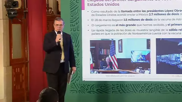 El secretario de Relaciones Exteriores, Marcelo Ebrard, dio a conocer que entre el día de hoy, 30 de marzo, y el próximo 4 de abril México recibirá 2 millones 342 mil 675 vacunas contra COVID-19.
