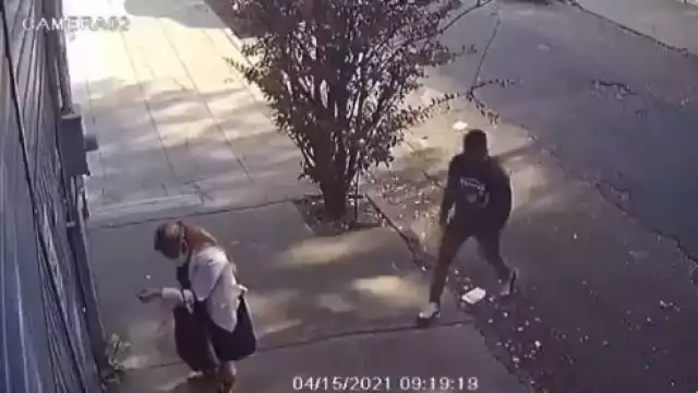 De pronto, se aprecia que un joven que portaba una sudadera, con la cabeza y el rostro cubiertos, se aproxima sigilosamente a la mujer para alzarle la falda.