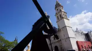 Se lleva a cabo la representación del Viacrucis en la Catedral de Campeche: EN VIVO