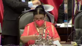 Durante sus palabras, Inés Parra, diputada por Morena, quien le preguntó sobre el impacto que tiene en la constitucionalidad de la autonomía del poder judicial, que en un artículo transitorio se establezca la ampliación del período en el ejercicio de funciones del presidente de la Suprema Corte de Justicia.