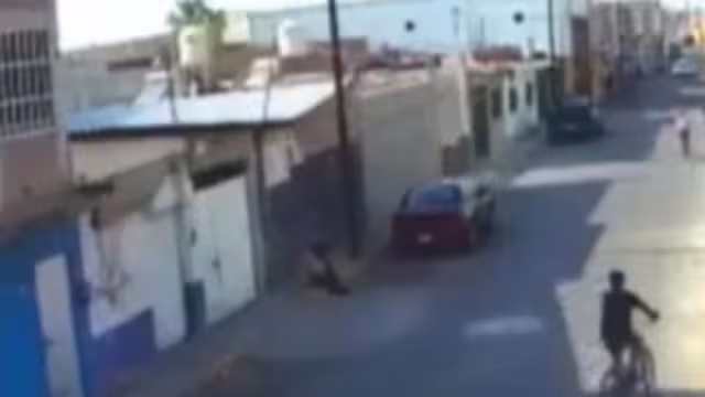 El momento de este ataque fue captado en un video de cámaras de seguridad, se observa a la mujer sentada en la banqueta al tiempo en que un sujeto se acerca en bicicleta.