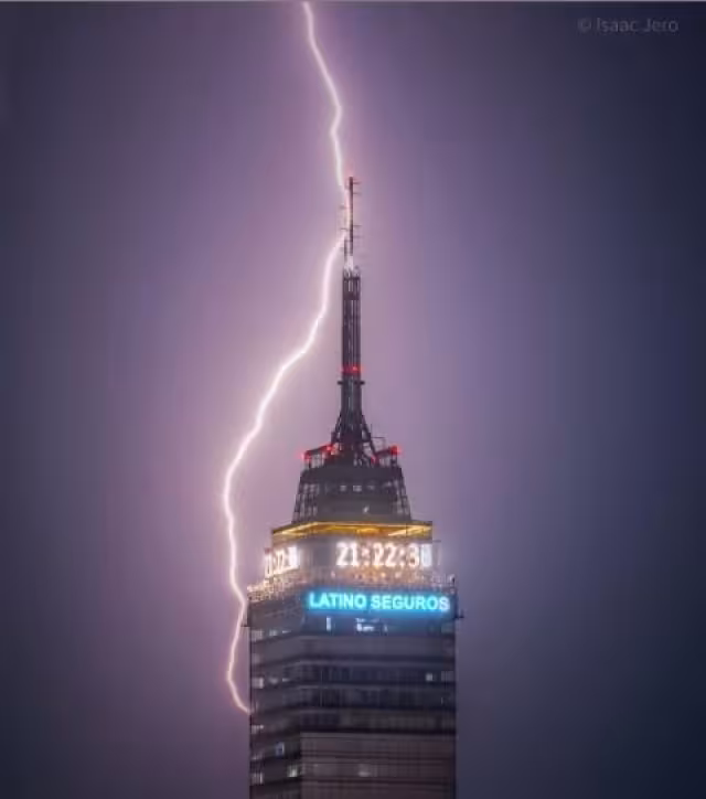 A través de su cuenta de Instagram, Isaac Jero dio a conocer la fotografía del rayo junto a uno de los edificios más conocidos de CDMX.