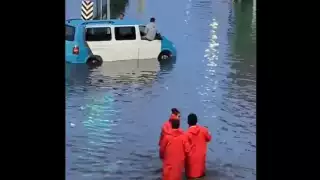 Esta situación ha requerido la presencia de elementos policiacos y bomberos, quienes, ataviados con botas e impermeables, transportan a personas atrapadas en pequeñas balsas.