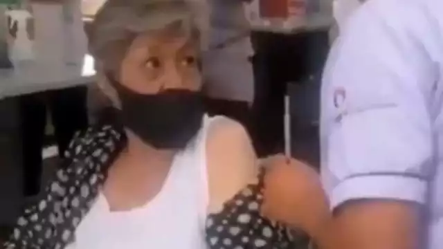 El video fue captado por la hija de la adulta mayor, se muestra el momento en el que la enfermera realiza el protocolo de inoculación; sin embargo, al momento de aplicar la dosis, al parecer sólo introdujo la aguja y simuló aplicar el biológico.