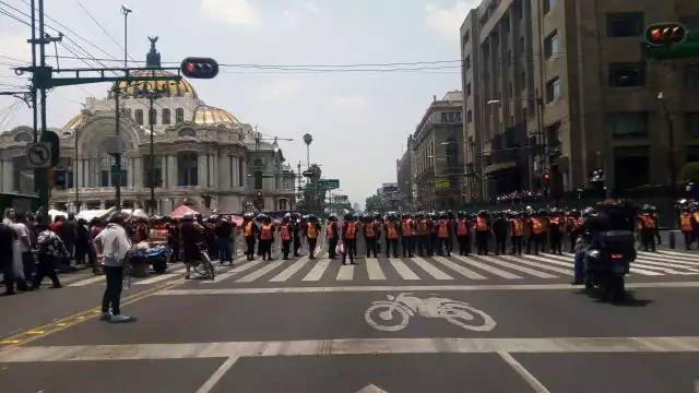 De acuerdo con los reportes de autoridades, el contingente partió poco después de la 13:30 de la tarde del Monumento a la Revolución, rumbo al Zócalo capitalino, sin embargo, fue encapsulado sobre Av. Juárez, a la altura de  Bellas Artes por un grupo policías de la Secretaría de Seguridad Ciudadana de la CDMX