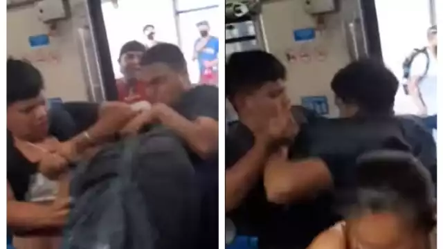 En las imágenes, se puede ver a dos hombres sujetándose mutuamente, cuando llega un tercero y comienza a soltar golpes, lo que termina en una riña entre los tres jóvenes, sin embargo, los usuarios detienen la pelea, pero solo de manera momentánea.