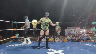 Halcón Negro Jr gana su combate de lucha libre contra Hades en la Arena Chetumal