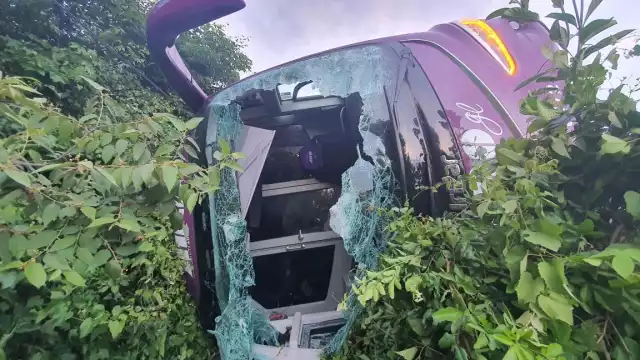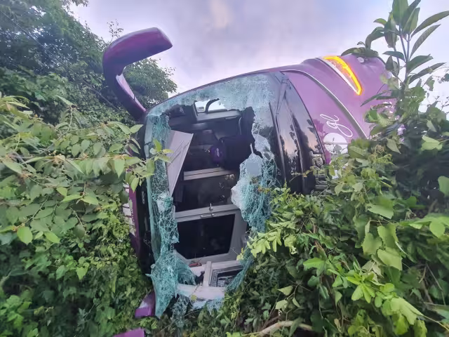 De acuerdo con reportes preliminares, el conductor del autobús perdió el control de la unidad debido a las malas condiciones del asfalto, por lo que se salió de la carretera, quedando volcado sobre su lado derecho.