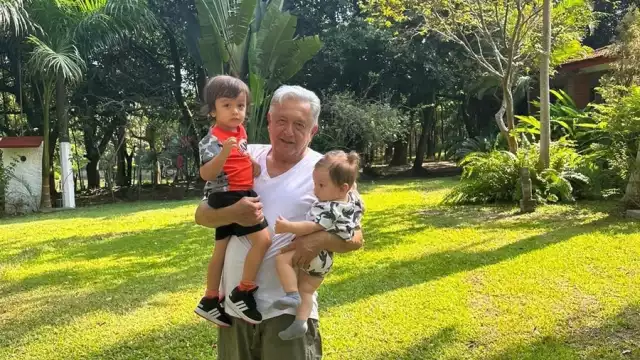 De la misma manera, el presidente compartió una foto junto a sus nietos: “Ya empezaron a llegar mis acarreados para el cumple de mañana: mis nietos Salomón y Mateo”.