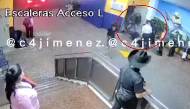 En la cuenta de Carlos Ramírez en Twitter se difundió el hecho que grabó una cámara de seguridad del inmueble, la lente que enfoca las “escaleras de acceso” capturó el hecho delictivo que se consumó con la participación de varias personas e incluso de un policía, al que se identifica por su uniforme.