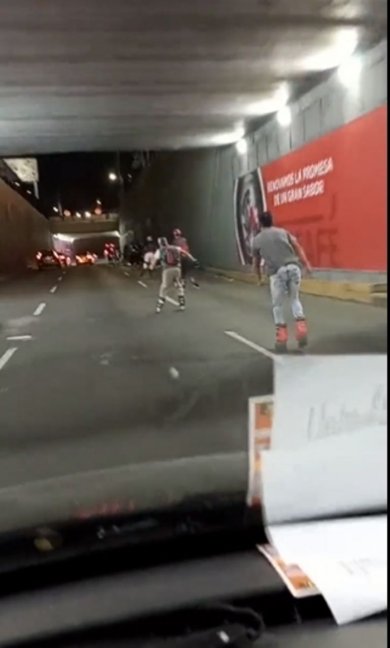 Un total de ocho personas sobre patines se internaron en los carriles centrales de esta vía pasando la Calzada de Guadalupe a gran velocidad. Muchos automovilistas optaron por detenerse para dejarlos pasar y así no ocasionar un accidente.