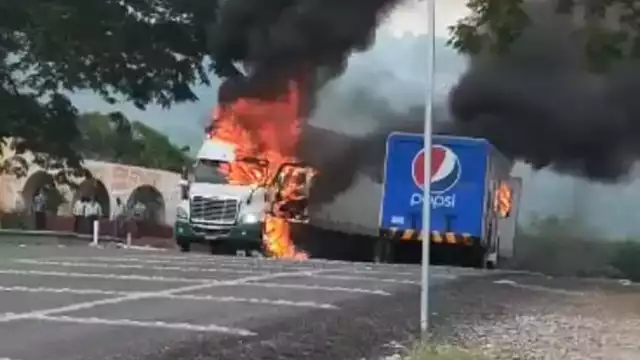 Integrantes de un grupo armado incendiaron dos camiones de carga, uno de la empresa Pepsi y otro de Transportes Industriales Unidos S.A, de C.V, de Orizaba, Veracruz, que transportaba más de 20 toneladas de azúcar.