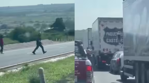 Los hechos fueron difundidos en un video a través de Twitter, donde se observa a dos hombres armados, quienes esperan que los autos se detengan para cruzar la carretera y asaltarlos.