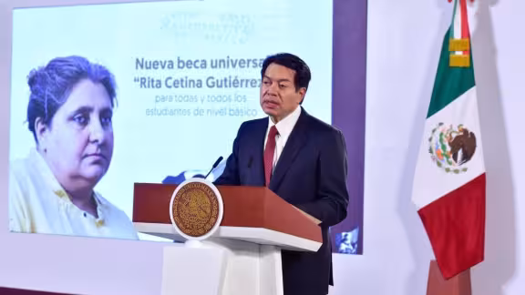 El funcionario explicó que la beca universal “Rita Cetina Gutiérrez” fue creada para garantizar que todos los estudiantes de secundarias públicas del país puedan continuar sus estudios sin obstáculos económicos.