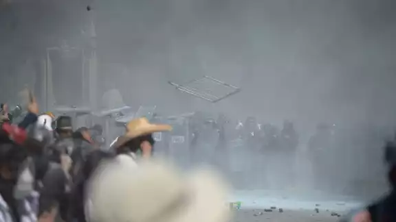 La protesta, que inició de manera pacífica, concluyó con enfrentamientos frente a Palacio Nacional, donde integrantes del llamado bloque negro rompieron barreras de seguridad, lo que derivó en una intervención de la policía capitalina.