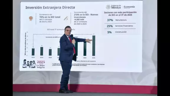 Marcelo Ebrard informó que México cerrará 2025 con casi 41 mil millones de dólares en inversión extranjera directa, mientras que las exportaciones siguen en ascenso pese al contexto internacional.