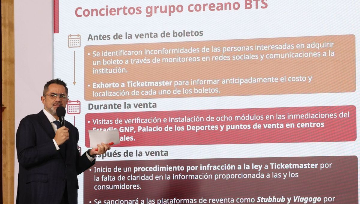 Además, adelantó que Profeco trabaja en nuevos lineamientos para regular la publicidad y venta de boletos, que obligarán a informar precios finales, cargos incluidos, mapas de localidades y datos claros antes de cualquier preventa.