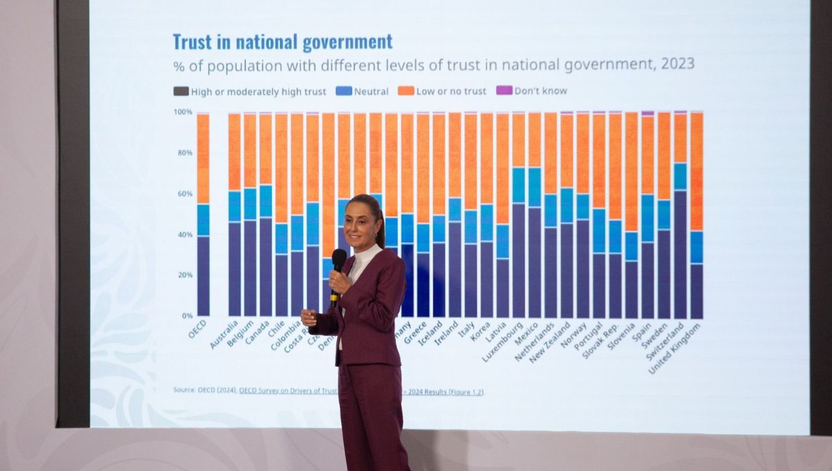Uno de los datos más destacados fue el nivel de confianza ciudadana. Según la encuesta de la OCDE, 54 por ciento de la población en México confía en el Gobierno nacional, cifra superior al promedio internacional de 39 por ciento.